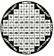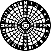 Type SEMF1:參考環(huán)形邊緣識別東西南北。四個(gè)象限標記朝向中心逐漸變細。通過(guò)參考四個(gè)象限中的環(huán)形邊緣數字和徑向字母來(lái)識別100個(gè)徑向扇區。