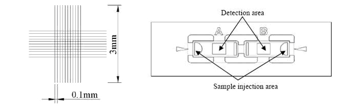 計數板的外觀(guān)尺寸:25*75*1.6mm,計數池深度0.02mm,每池的加樣體積數3µl?。