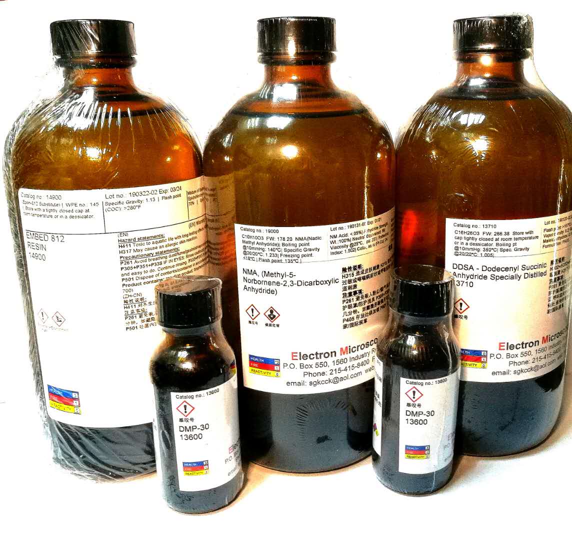 使用時(shí)注意,EMbed 812 可能會(huì )腐蝕所接觸到的塑料。應用Epon-812樹(shù)脂的所有配方均適用于Embed 812,例如Luft's 配方, Mollenhauer's and EPON-ARALDITE 混合物配方。