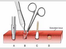 Place the punch perpendicular to the skin and apply firm and constant downward pressure with a circular twisting motion. Removal of the punch to "check the progress" should be avoided as this may result in a ragged wound and a shredded biopsy sample. A definite "give" occurs when the punch reaches the subcutaneous fat, indicating that a full-thickness cut has been made. Remove the punch and apply downward finger pressure at the sides of the wound to pop up the core. Completely elevate the core with gentle use of forceps or a needle tip and excise it at its base with small tissue scissors. The pressure applied through forceps to elevate the core should be gentle to minimize the destruction and distortion of tissue in the biopsy sample. After finishing the harvest of the tissue, prepare the biopsy site for closure。