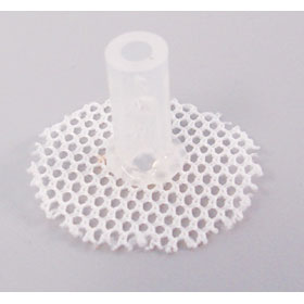 與所有標準的皮膚扣件一樣,小鼠的皮膚扣包括硅膠筒和圓形滌綸網(wǎng)狀小片兩部分,是動(dòng)物的手術(shù)中不可或缺的物件。硅膠筒內徑為0.123英寸;滌綸網(wǎng)狀小片的直徑大約1英寸。皮膚扣作為導管通過(guò)皮膚的一個(gè)通道,協(xié)助完成導管的取樣或定量給藥工作。皮膚扣可替代小動(dòng)物的jacket,可保護導管通過(guò)點(diǎn)的皮膚免受損傷,降低感染的幾率。也可與外徑為0.124英寸的標準不銹鋼彈性細絲完美匹配。