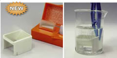 包括Wash-N-Dry蓋玻片架和Wash-N-Dry載玻片架,均可以高壓滅菌,可以透明、處理、染色、干燥一口氣完成。國際實(shí)驗室最新流行款式,一般用燒杯來(lái)盛放染液或者洗液,再將架子浸入其中。蓋玻片架至多可以放置10片蓋片,最奇妙的是蓋片的大小不受制約,18mm,22mm,25mm,均可以從容放置。載玻片架可以放置12個(gè)標準載玻片。