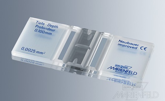 德國原裝進(jìn)口Marienfeld血球計數板,改進(jìn)牛鮑型(Neubauer-improved),由特殊光學(xué)玻璃制成,每板有2個(gè)計數池,H型凹槽,帶有歐盟CE標識。Bright-Line(0650030)為金屬亮線(xiàn)型,Dark-Line(0650010)為蝕刻暗線(xiàn)型。本產(chǎn)品有特殊設計的V型槽,可引導液體的加入,防溢流現象發(fā)生。計數池深度為0.1mm,適用于紅、白血球、血小板、細胞。