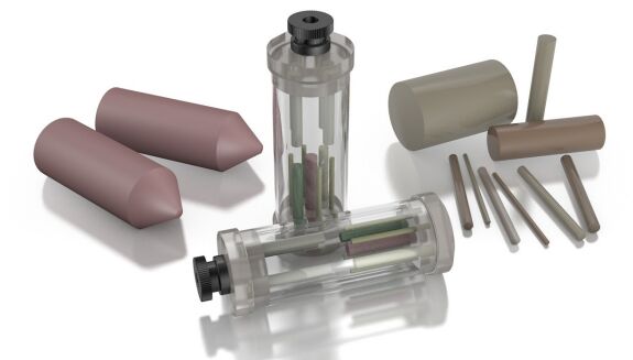 Model 090,不同的rod以一定的空間分布于環(huán)氧類(lèi)樹(shù)脂中內(rods被包埋其中啦),外觀(guān)類(lèi)似小型的鼠類(lèi),20mm圓柱,大約60mm長(cháng)。