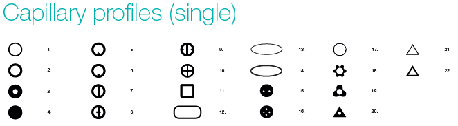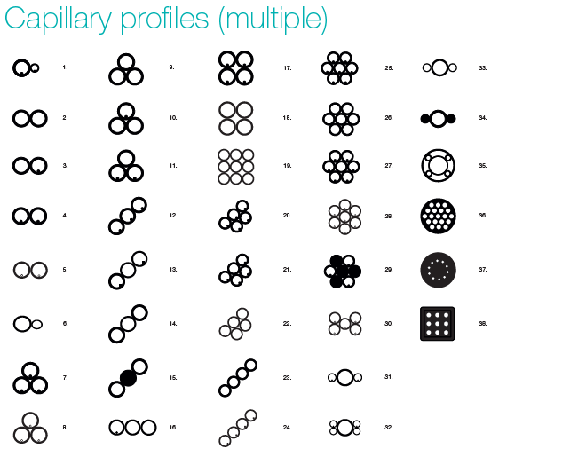 原產(chǎn)德國的多孔道毛細管,分為兩大類(lèi)別,單管多孔道(single)和多管排列多孔道(multiple)。常見(jiàn)的圓形內的多孔道排列,給出完美的幾何對稱(chēng),例如θ玻璃毛細管,這種對稱(chēng)是毛細管中層流的產(chǎn)生所必需的,同時(shí)也能限制流動(dòng)。