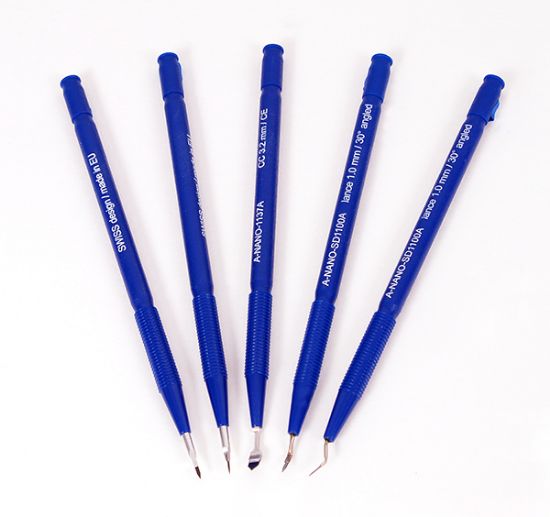 這種納米鉆石刀目前是最鋒利的,滿(mǎn)足你的所有的顯微解剖操作。提供兩種材質(zhì)的刀柄供選擇:鋁制(72005系列)和塑料柄(72006系列)。刀片采用多晶CVD工藝制作,等離子磨削,保證了刀刃的精度和鋒利。
