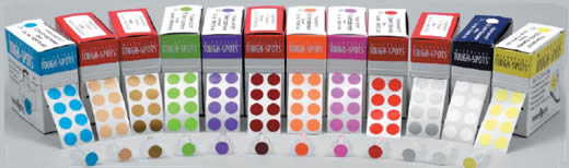 2.激光打印A4標簽: Laser Tough-Spots®,A4紙張大小,每張上面有預制好的圓形小標簽,顏色不同便于分類(lèi)。