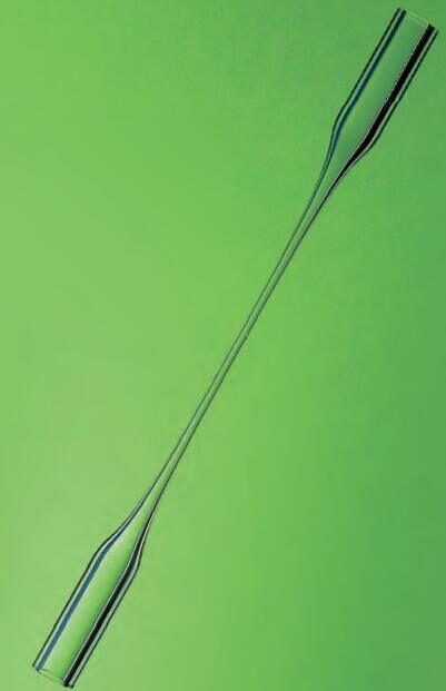 原產(chǎn)德國的雙漏斗薄壁玻璃毛細管,由硼硅玻璃制造(borosilicate glass 3.3),這些特殊的樣品管適合于流體測量。測量段在毛細管中部的壁厚僅為20μm左右,兩端壁較厚,便于安裝液體流動(dòng)通道。事實(shí)證明,薄連接軟管最適合這些毛細管(軟管推薦用軟聚四氟乙烯管)。