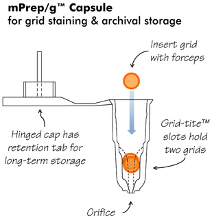 mPrep/g™ Grid Processing Capsules in Storage Box, 16 Capsules, 16 Blank Label Sets |