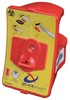 QLICKSMART手術(shù)刀片安全移除器是世界首創(chuàng )的單手移除手術(shù)刀片的工具,可以防止用手拿鑷子或者徒手取出刀片時(shí)所造成的意外傷害以及血源感染的風(fēng)險。只需要將手術(shù)刀瓶送平推入移除器插入口,直到聽(tīng)到“咔嗒” 一聲,刀片即自動(dòng)完成移除,這個(gè)移除器可以容納100片。