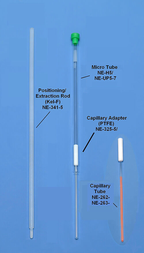 核磁管/毛細管套裝,包含一個(gè)核磁管(Micro NMR Sample Tube)、一個(gè)適配蓋子(one adapter)、一個(gè)拉取桿(one extraction rod)、5根毛細管capillaries。適于微量樣品15-115µl的測量。請參閱下表信息選擇最適合樣品體積和探針的核磁管和毛細管大小。樣品被放置在一次性毛細管中,對較小直徑樣品有著(zhù)更好的分辨率。毛細管和管之間的殘余(環(huán)形)空間可以用其它材料填充,而不是直接將這些材料添加到樣品中。 這不僅使您的樣本盡可能集中,而且可用來(lái)1H,19F,2H測量。